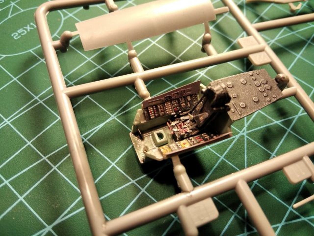 Zabrałem się właśnie za przepięknego Suchoja i mam nadzieję, że będzie to ukoronowanie mojej dotychczasowej kolekcji. Cały czas poprawiam swoje umiejętności w brudzeniu, Tamiya black liner, suchy pędzel... W tym modelu przydałby się aerograf z uwagi na piękne błękitnawe malowanie, ale jeszcze takiego sprzętu nie mam. Postaram się oddać efekt krycia z pomocą pędzla. To będzie również pierwszy model, na którym postaram się zrobić washe z użyciem lakierów. Jeśli macie jakieś patenty - chętnie posłucham! :) Tymczasem dzielę się widoczkiem z powstającym kokpitem. Blaszki Eduarda. Ponieważ boczne panele są całkiem ładnie odciśnięte - zdecydowałem, że nie będę ich przykrywał blachami - są normalnie malowane. Blachy są na zupełnie zewnętrznych "skrzydełkach" oraz oczywiście na fotelu. Do tego pedały steru pionowego. Za chwilę główwny panel i drążek sterowniczy. Ciekaw jestem Waszych wrażeń! :-) Pozdrawiam!