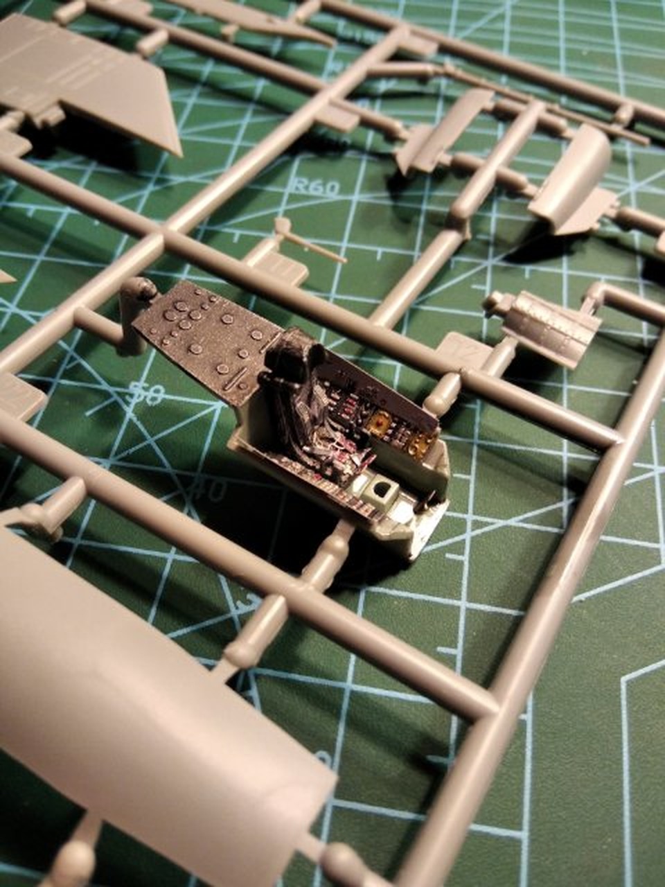Tym razem już cały kokpit :) Doszedł drążek i główny panel - elementy fototrawione